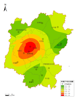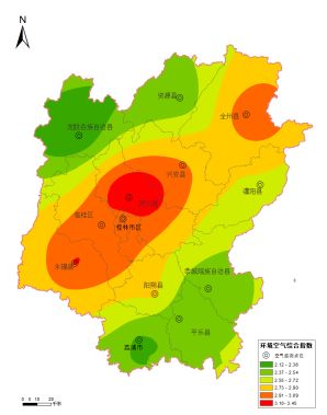 图3 2025年8月桂林市环境空气质量综合 指数分布图 |