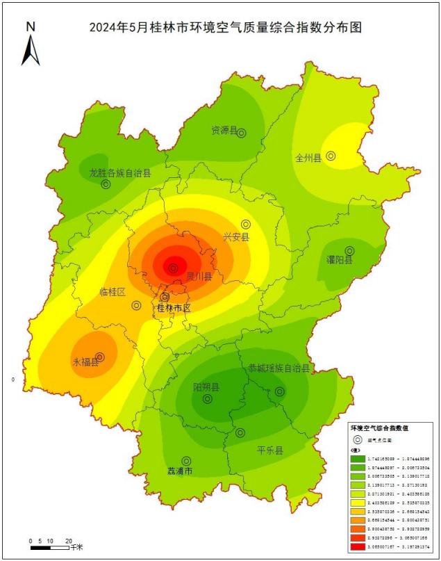 附图1 2024 年5月桂林市环境空气质量综合指数分布图
