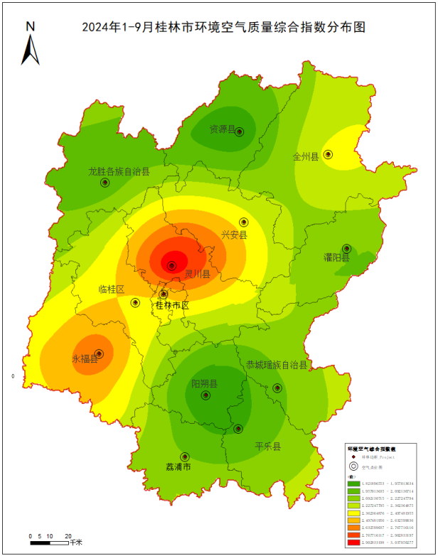 附图1 20241-9月桂林市环境空气质量综合指数分布图