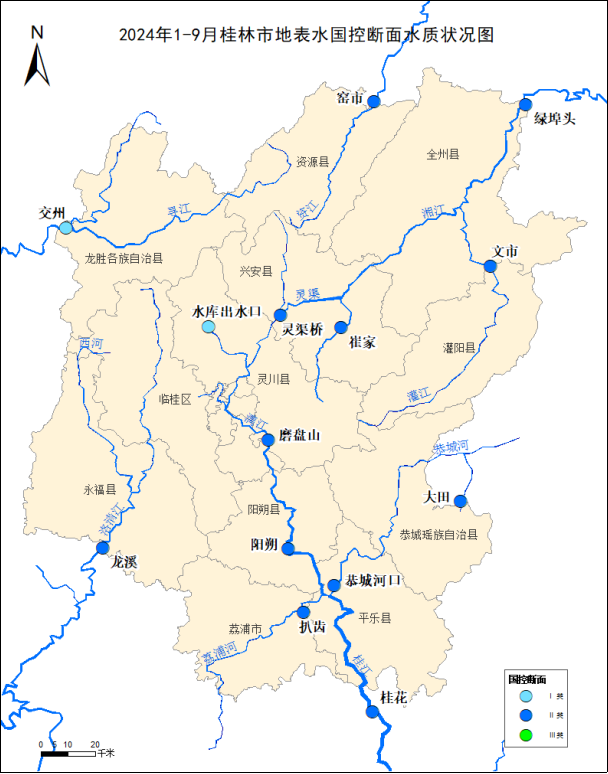 附图3    20241-9月桂林市地表水国控断面水质状况图