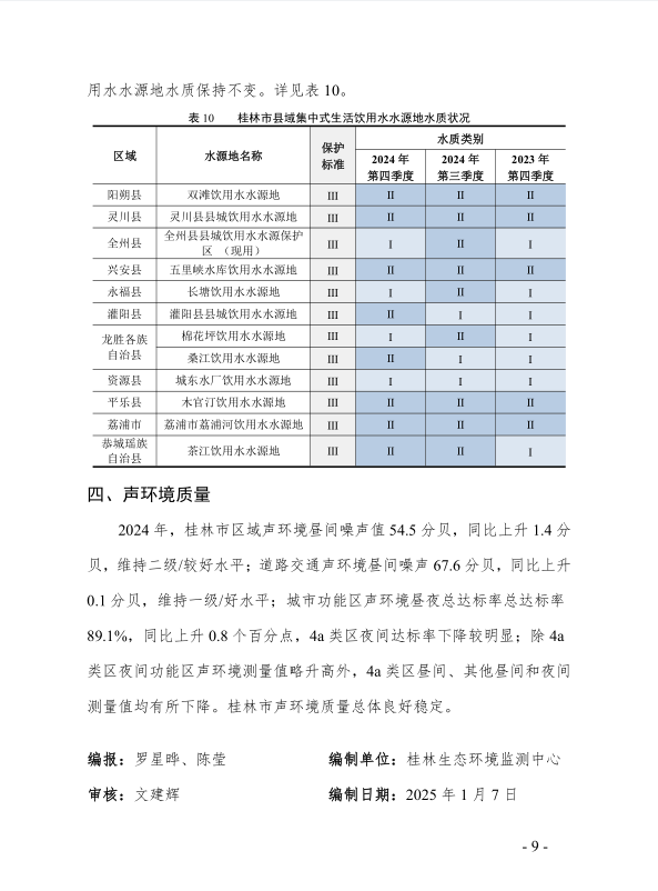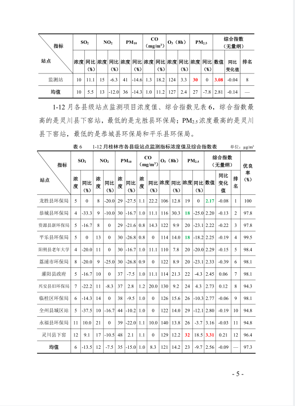 桂林市生态环境质量状况月报(2024年12月份)
