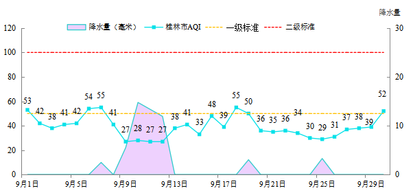 1 20259月桂林市环境空气污染物浓度值及变化情况       单位:μg/m3