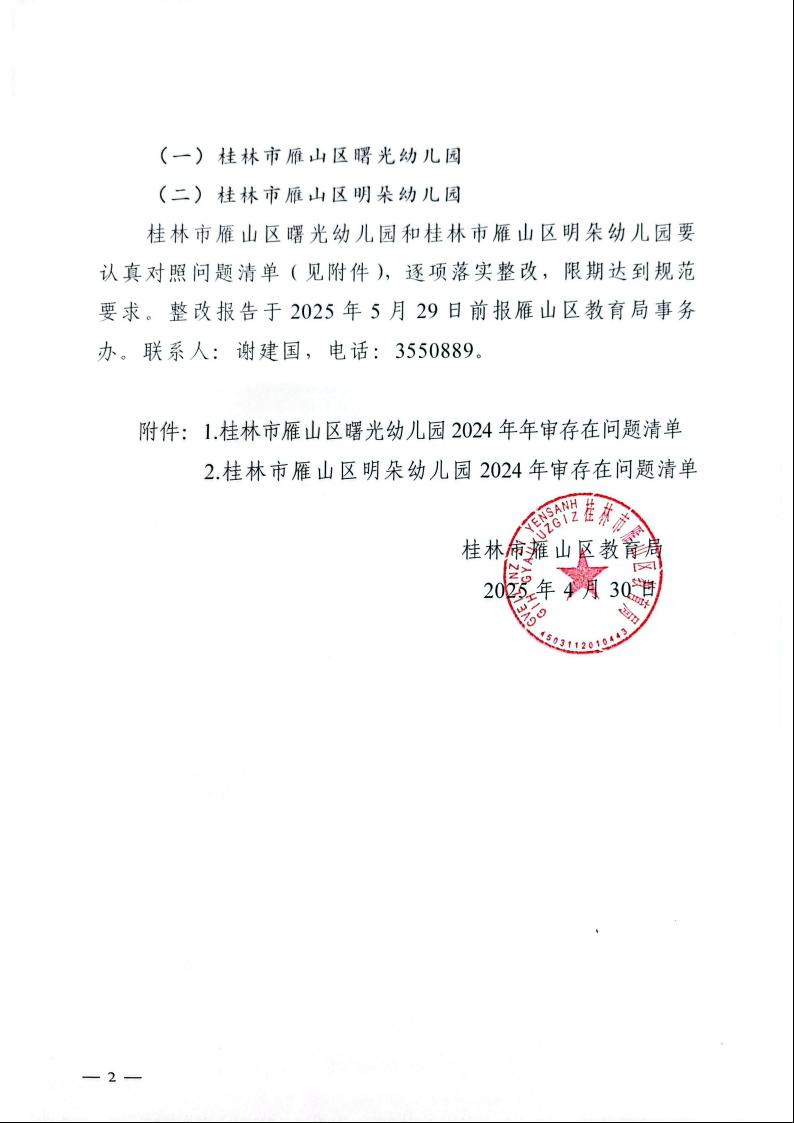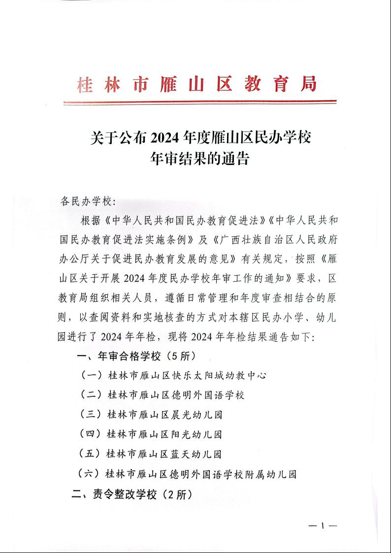 关于公布2024年度雁山区民办学校年审结果的通告
