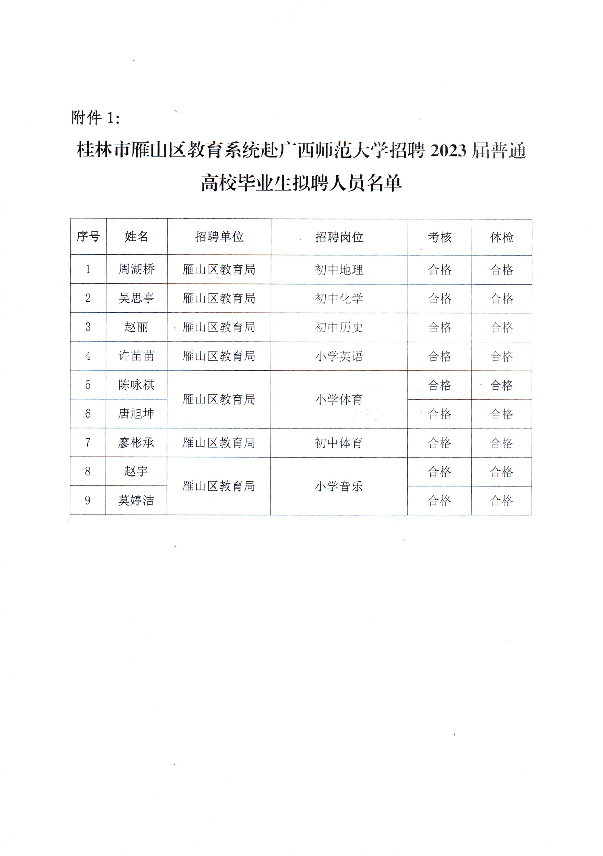 2023年桂林市雁山区教育系统拟聘人员名单公示