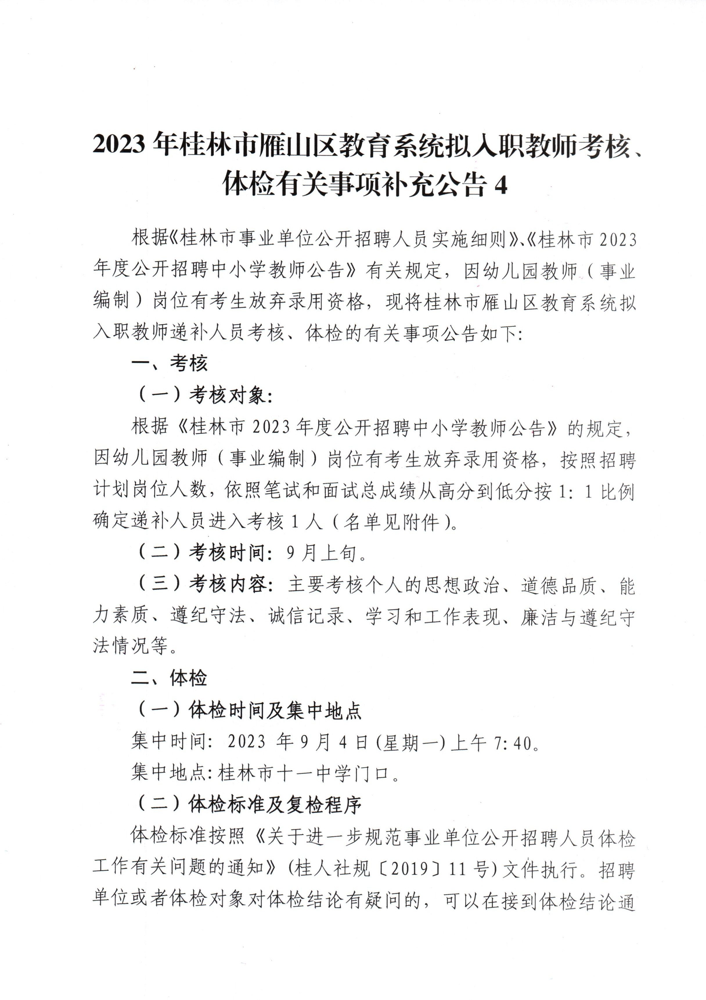 2023年桂林市雁山区教育系统拟入职教师考核、体检有关事项补充公告4