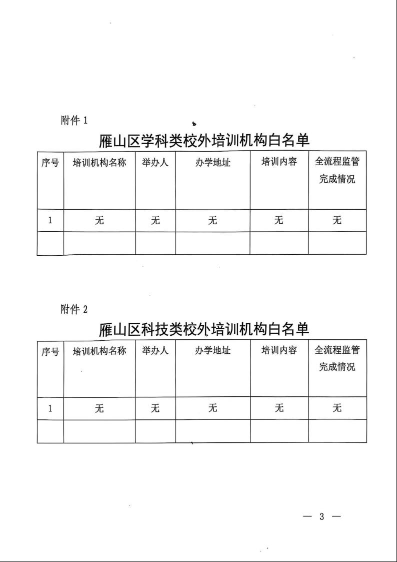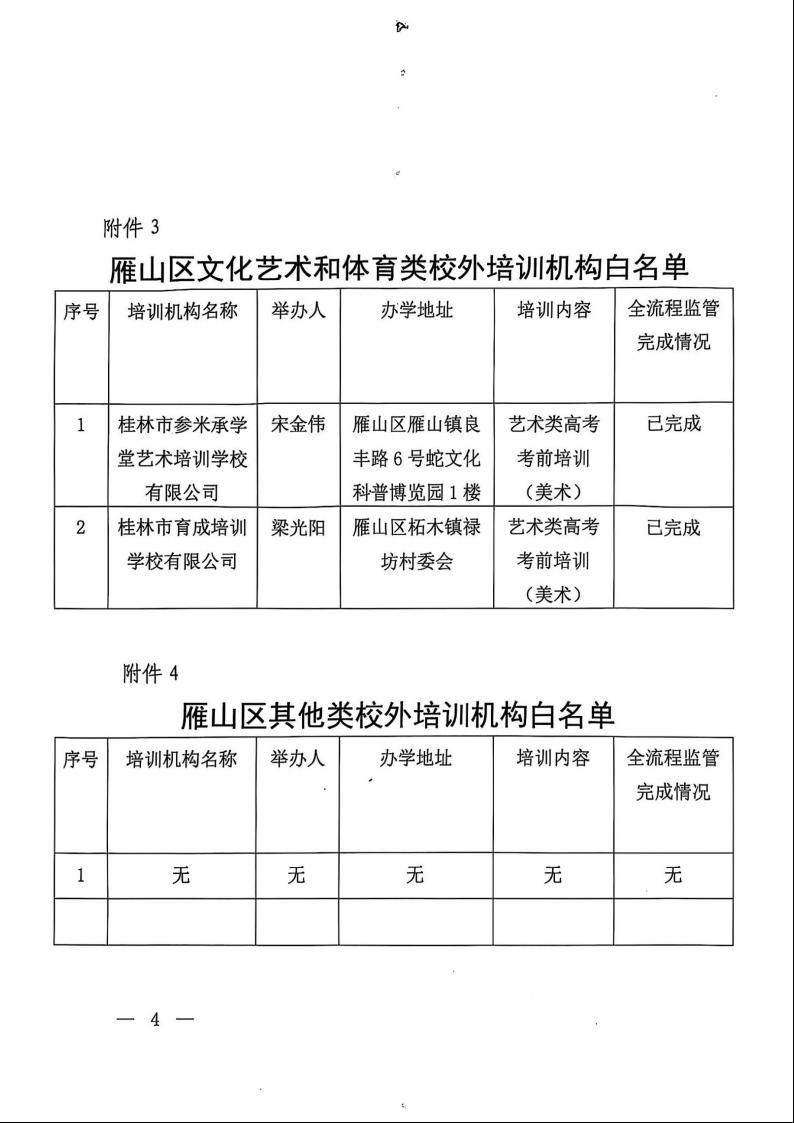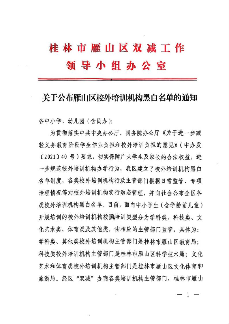 关于公布雁山区校外培训机构黑白名单的通知