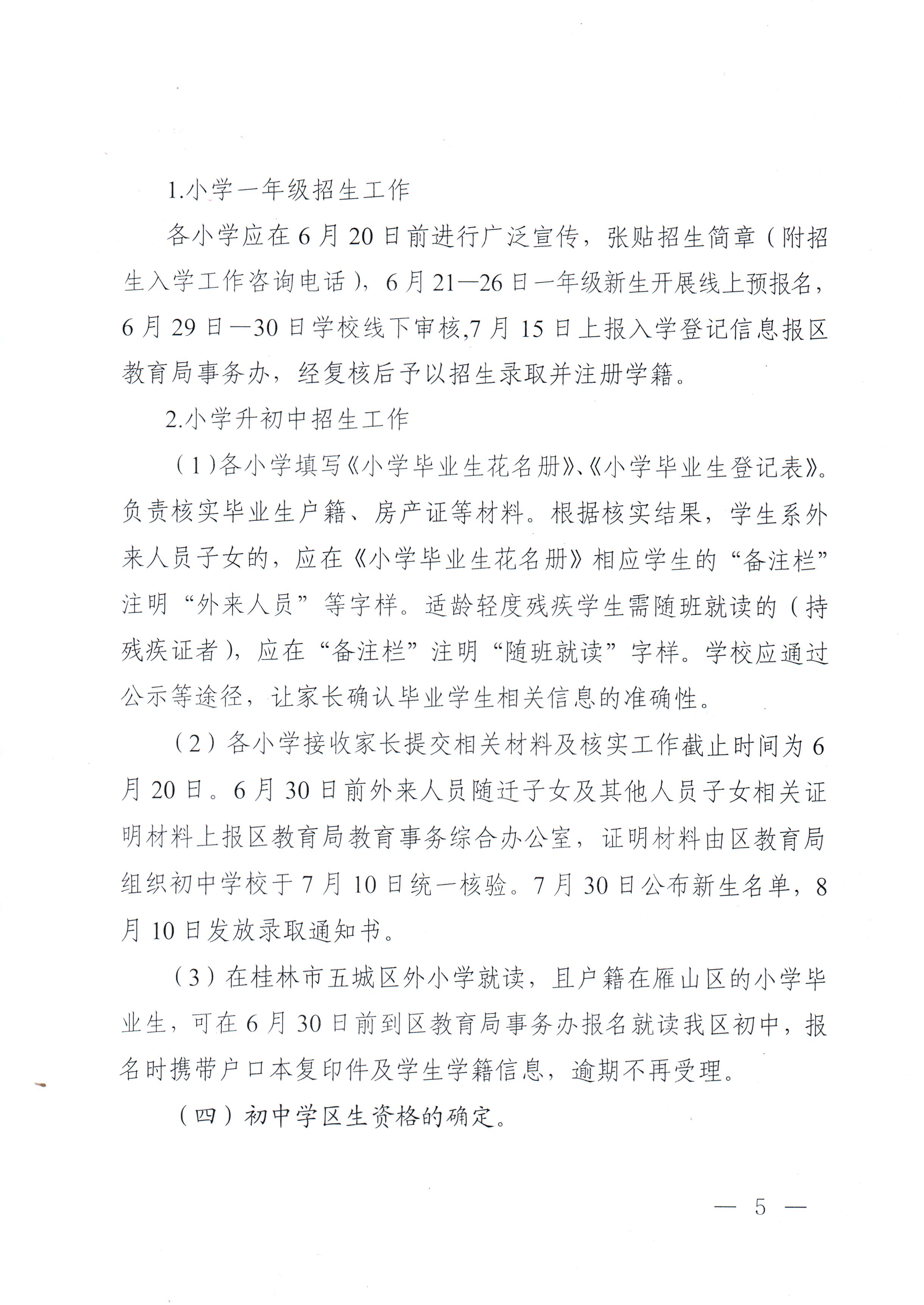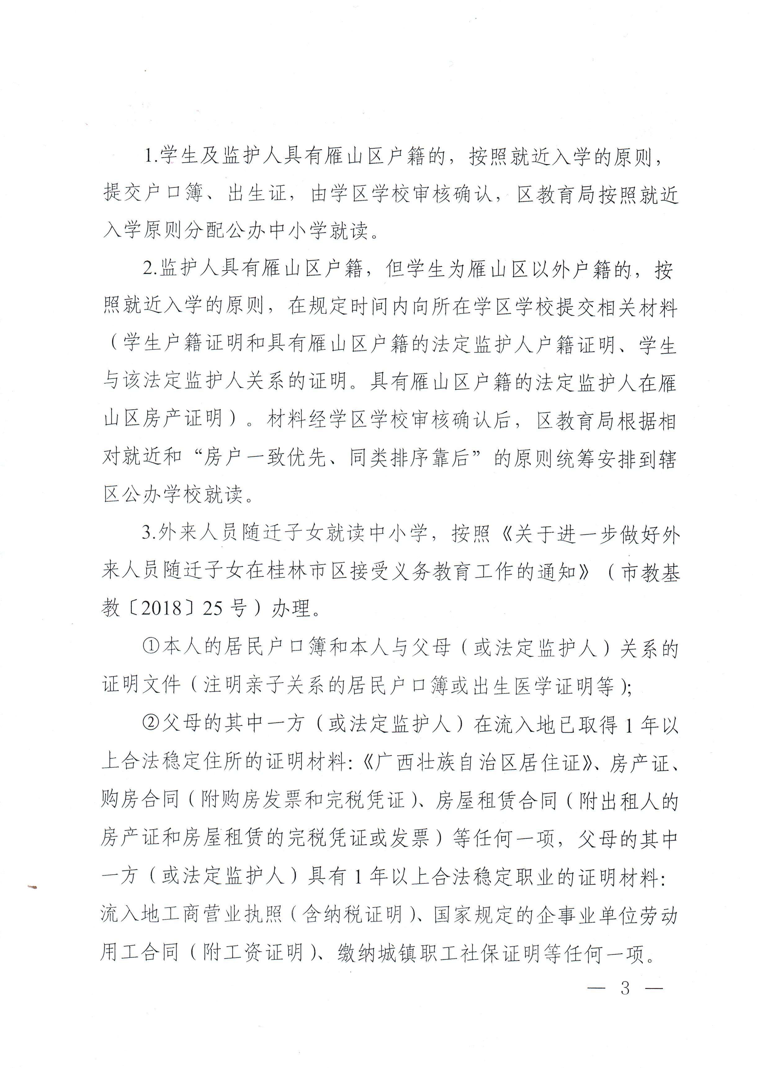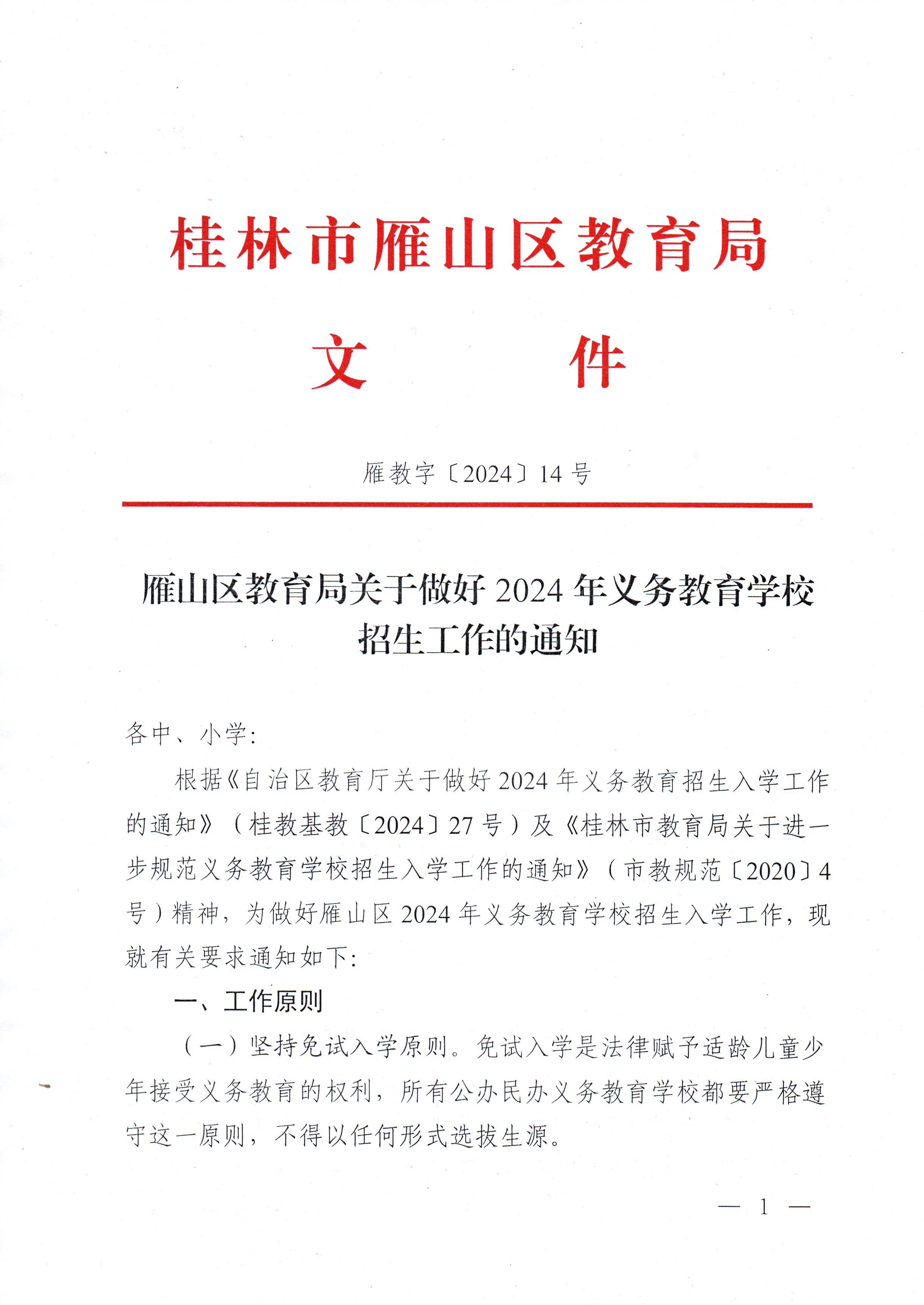 【教育局公告】雁教字〔2024〕14号雁山区教育局关于做好2024年义务教育学校 招生工作的通知
