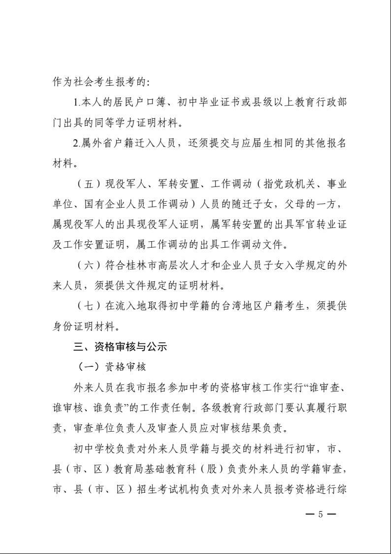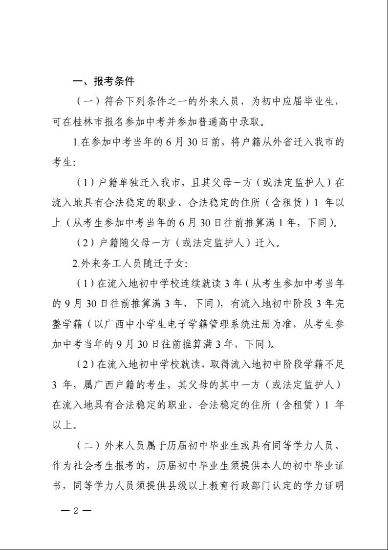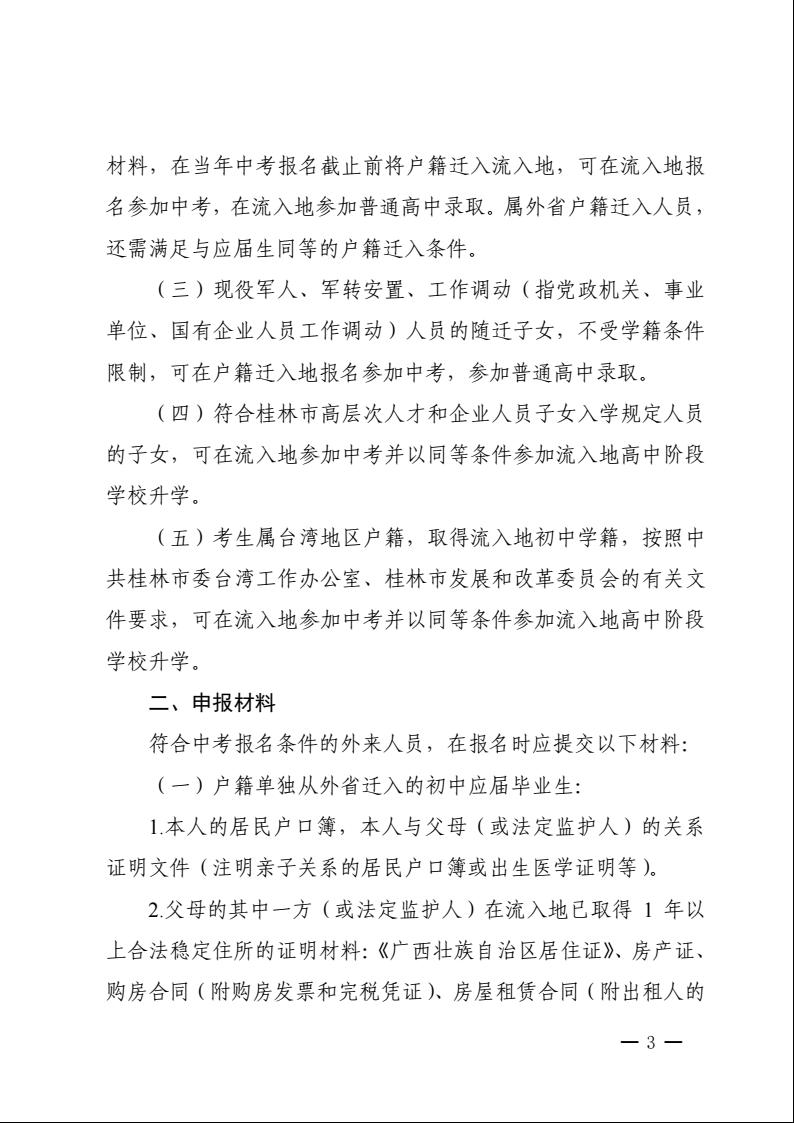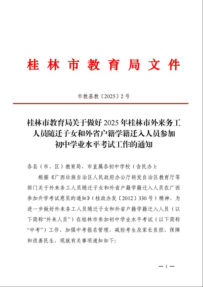 桂林市教育局关于做好2025年桂林市外来务工人员随迁子女和外省户籍学籍迁入人员参加初中学业水平考试工作的通知