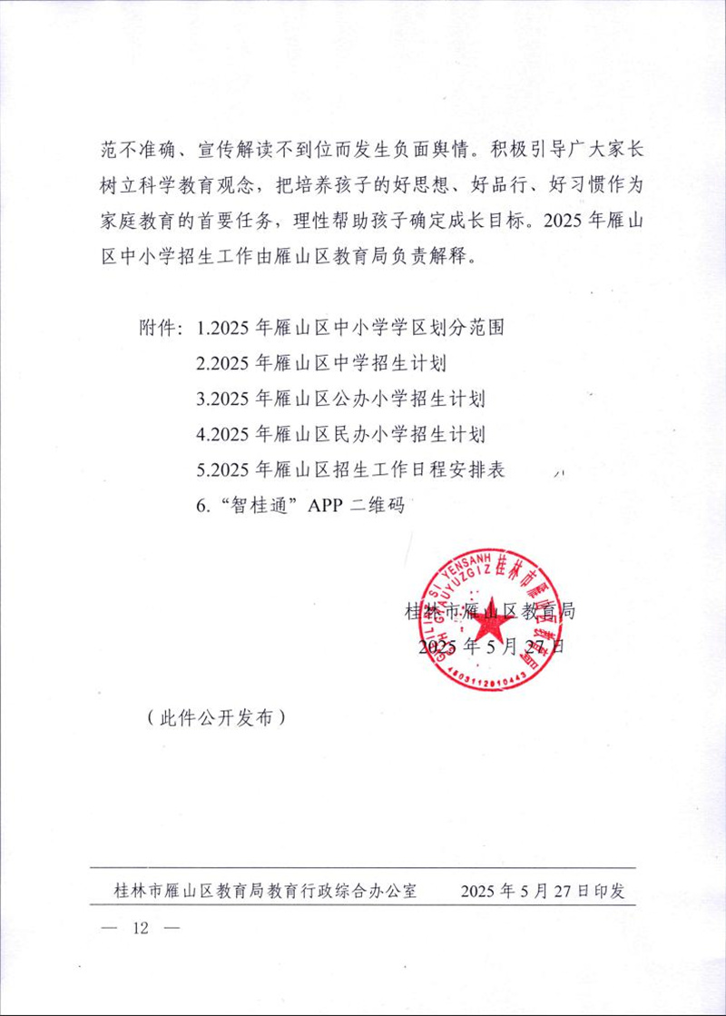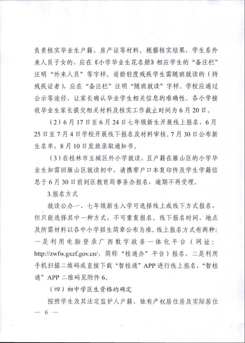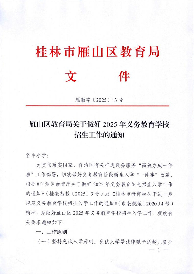 雁教字〔2025〕13号雁山区教育局关于做好2025年义务教育学校招生工作的通知
