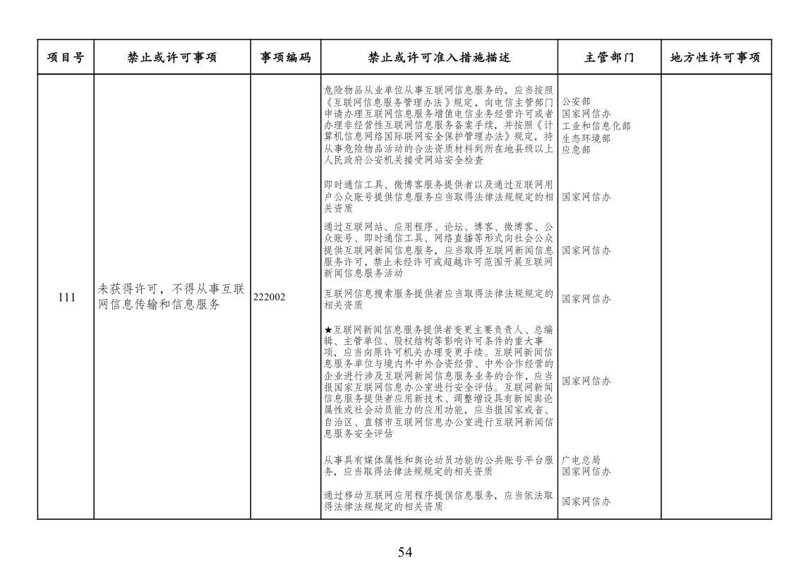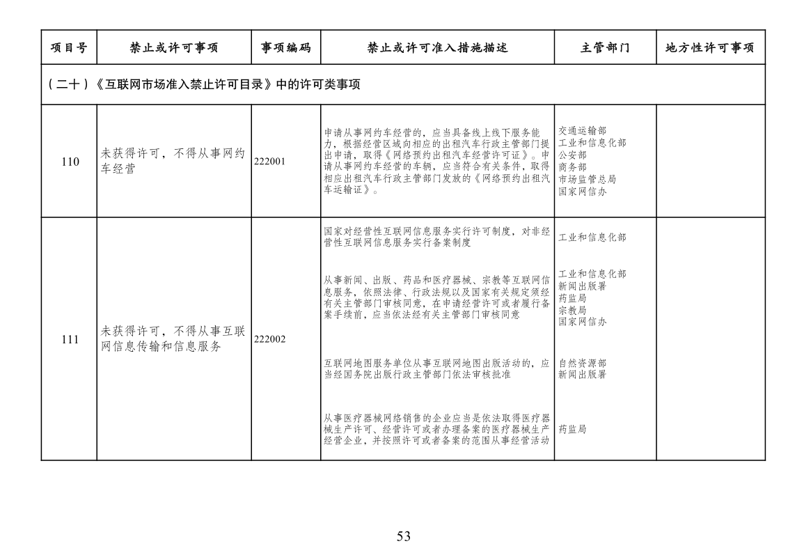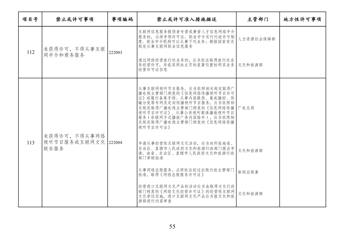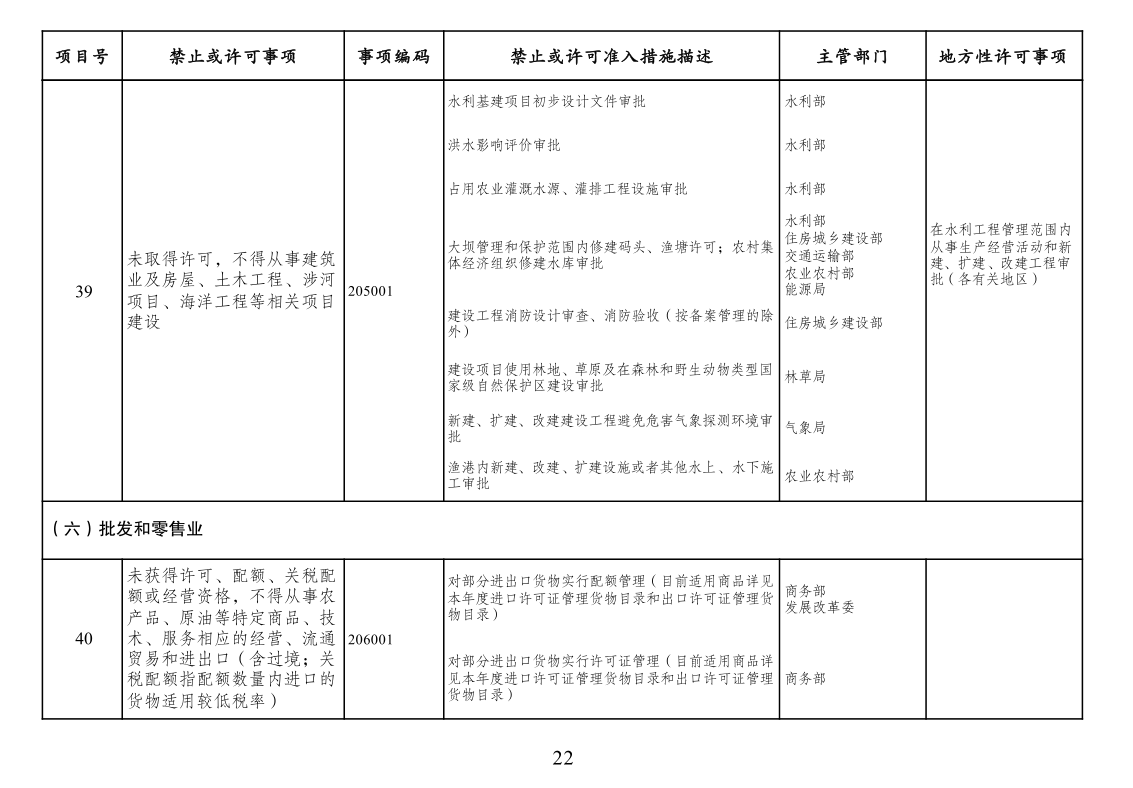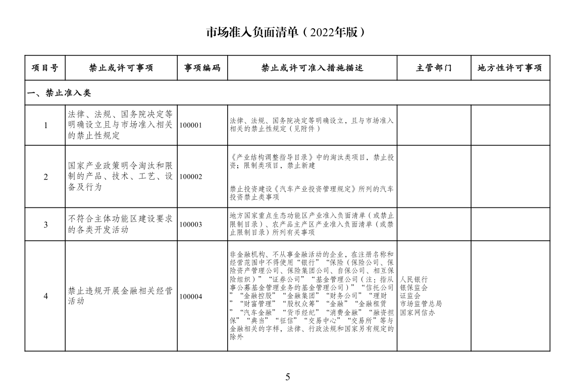 市场准入负面清单(2022年版)