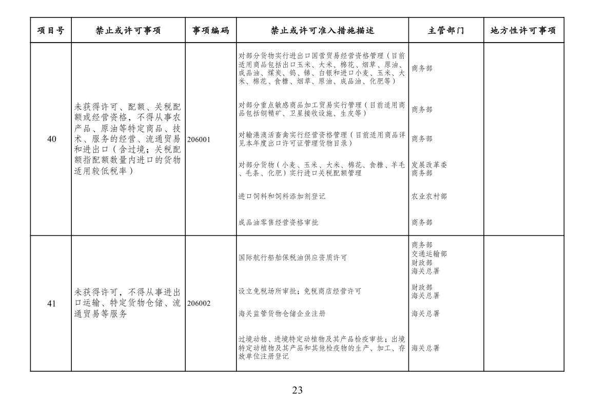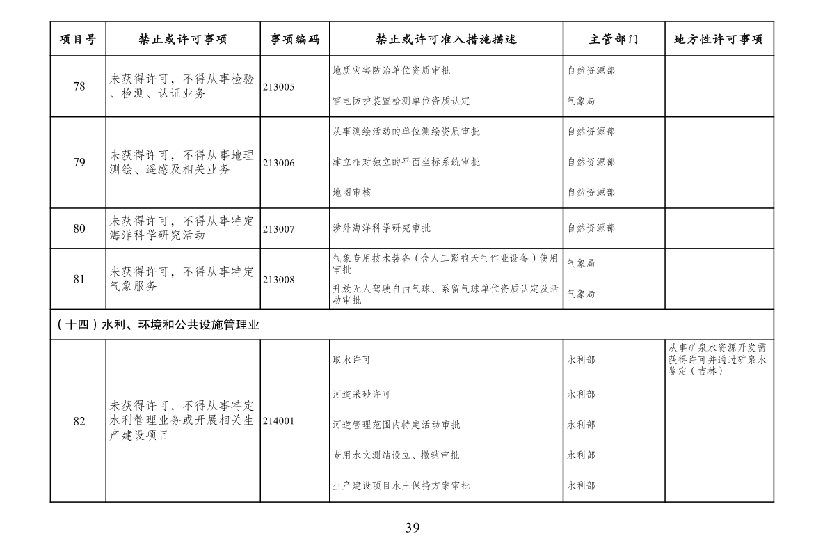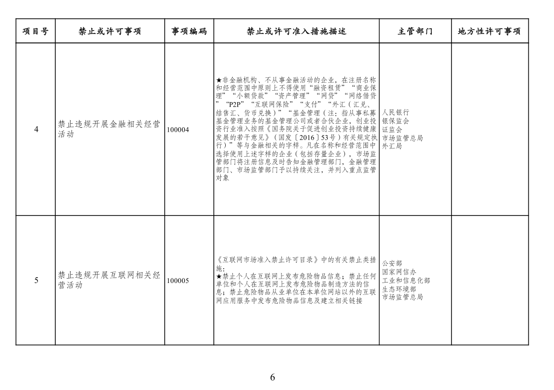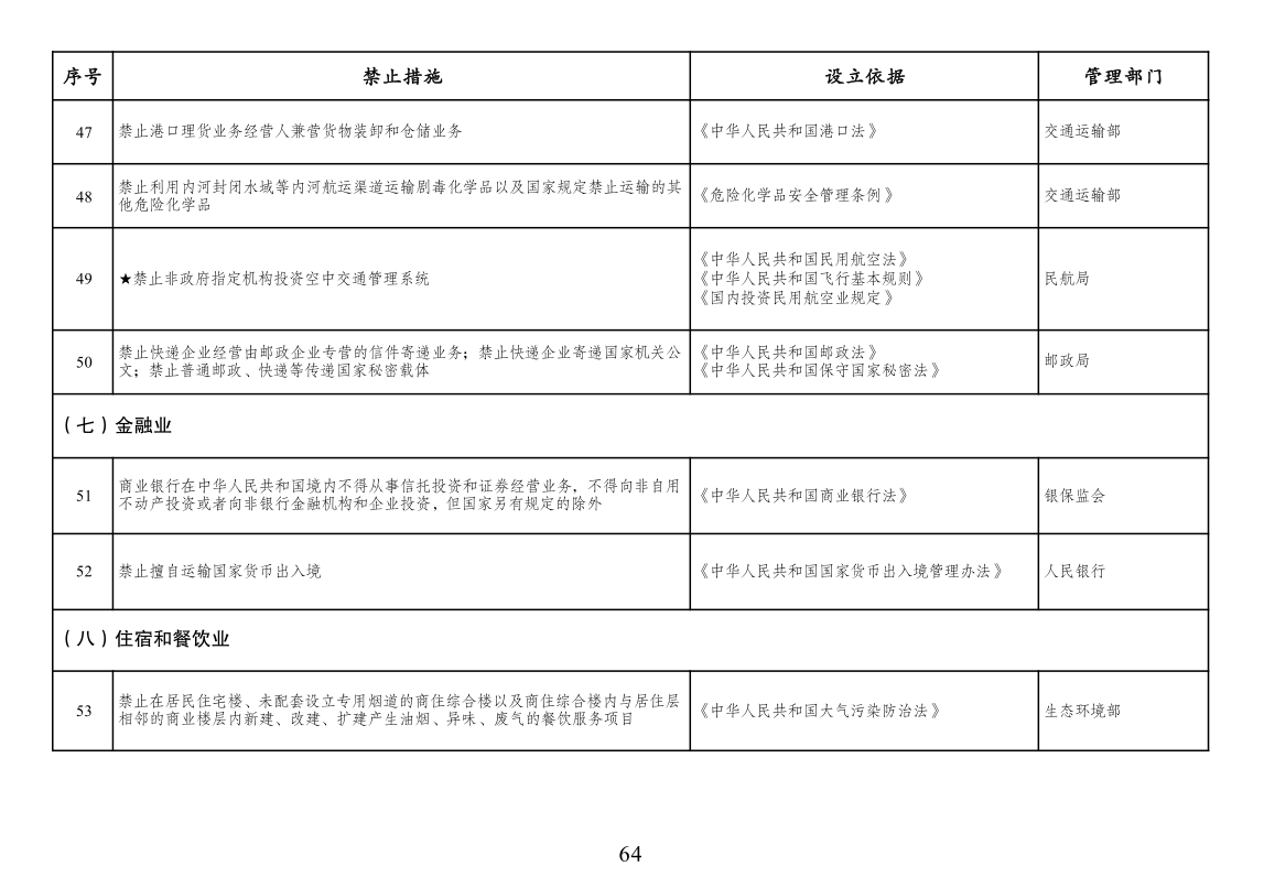 二、市场准入负面清单管理措施适用范围。市场准入负面清单依法列出中华人民共和国境内禁止或经许可方可投资经营的行业、领域、业务等。针对非投资经营活动的管理措施、准入后管理措施、备案类管理措施、职业资格类管理措施、只针对境外市场主体的管理措施以及针对生态保护红线、自然保护地、饮用水水源保护区等特定地理区域、空间的管理措施等不列入市场准入负面清单,从其相关规定。