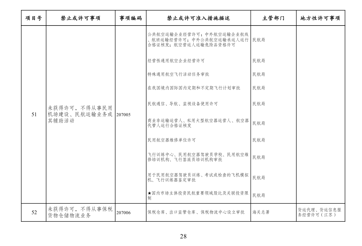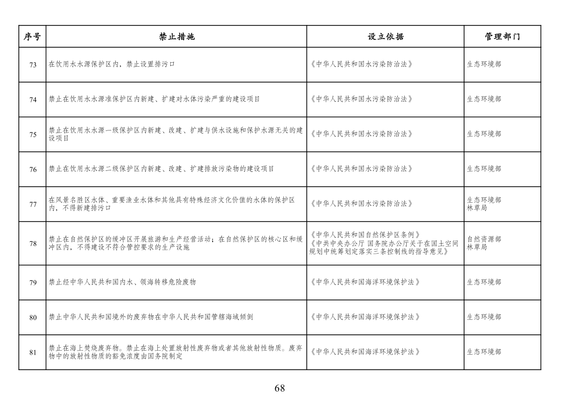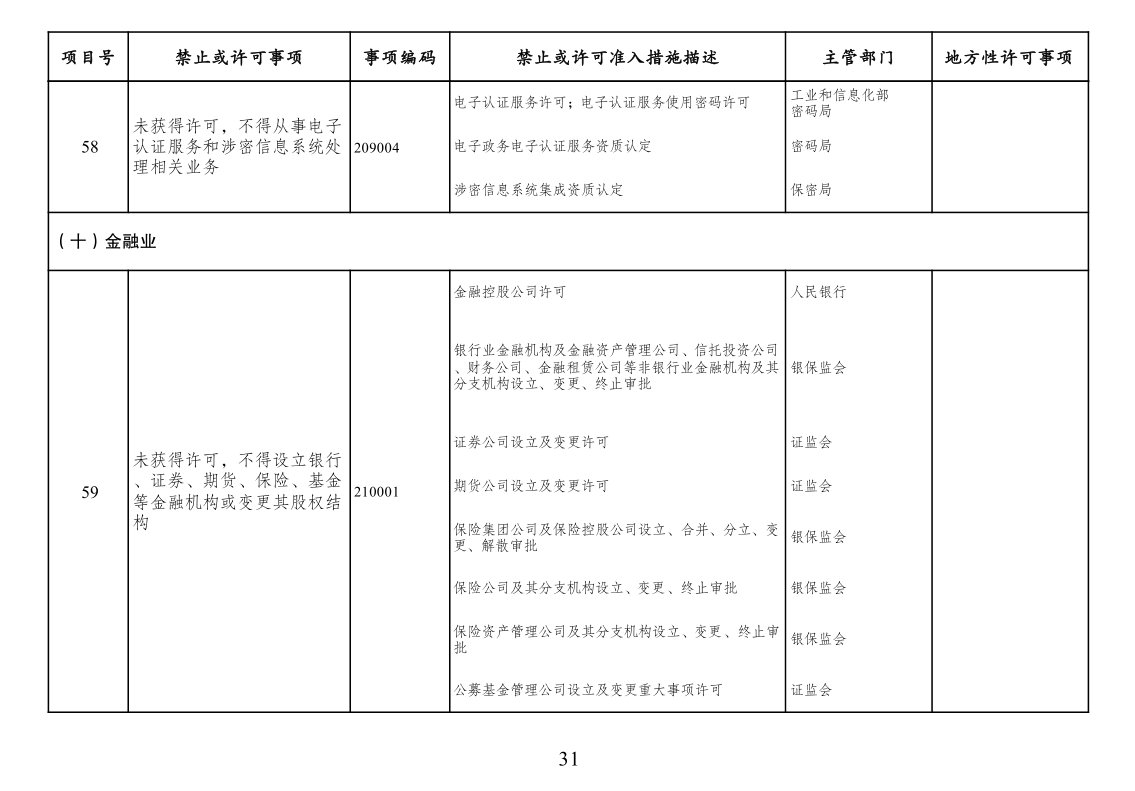 二、市场准入负面清单管理措施适用范围。市场准入负面清单依法列出中华人民共和国境内禁止或经许可方可投资经营的行业、领域、业务等。针对非投资经营活动的管理措施、准入后管理措施、备案类管理措施、职业资格类管理措施、只针对境外市场主体的管理措施以及针对生态保护红线、自然保护地、饮用水水源保护区等特定地理区域、空间的管理措施等不列入市场准入负面清单,从其相关规定。