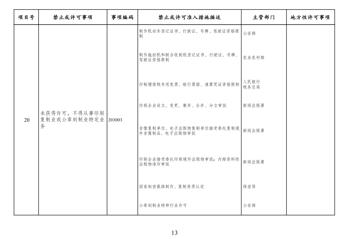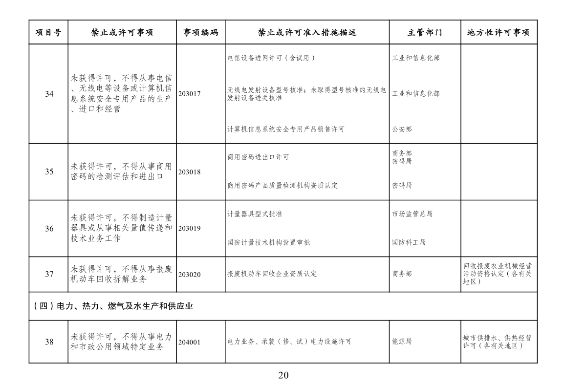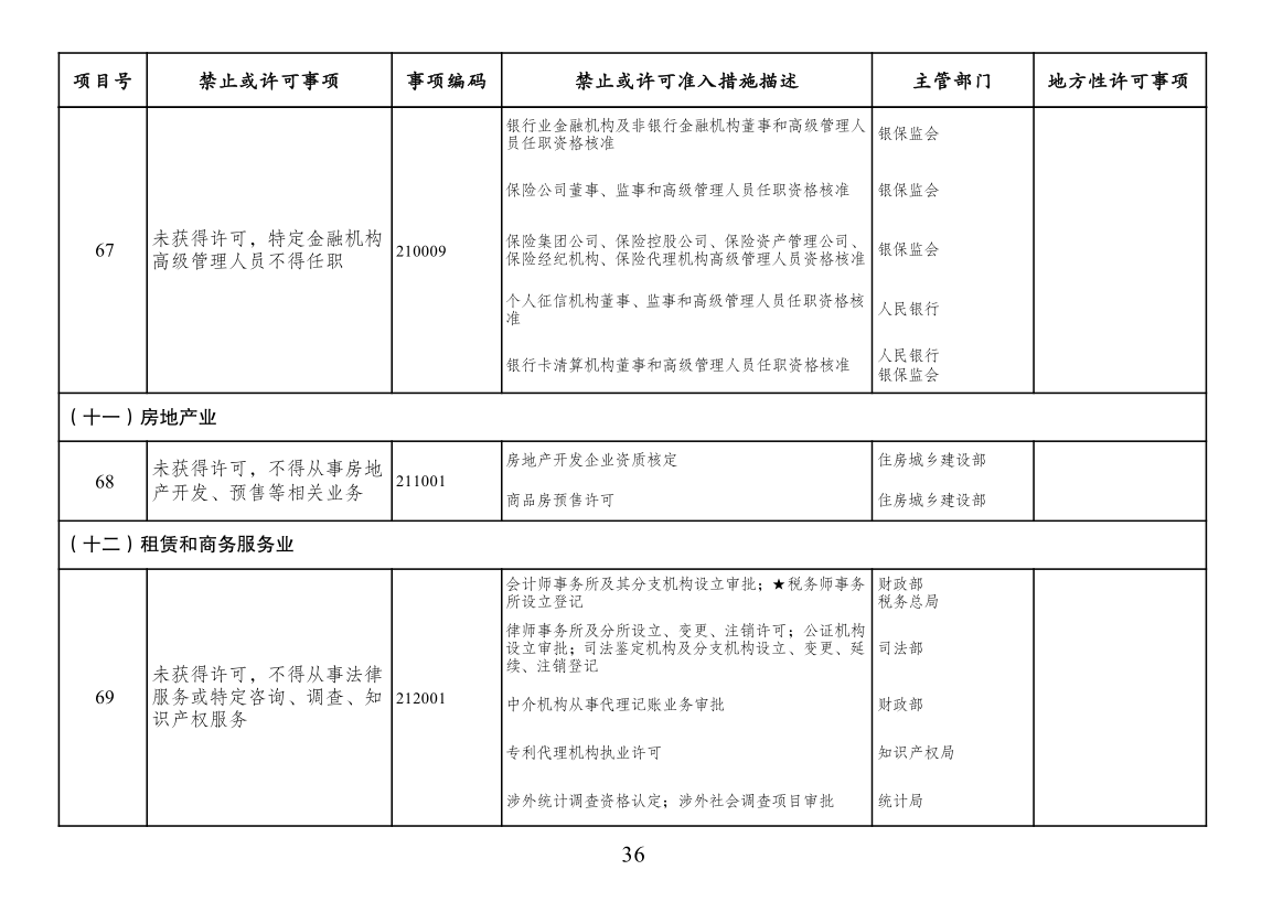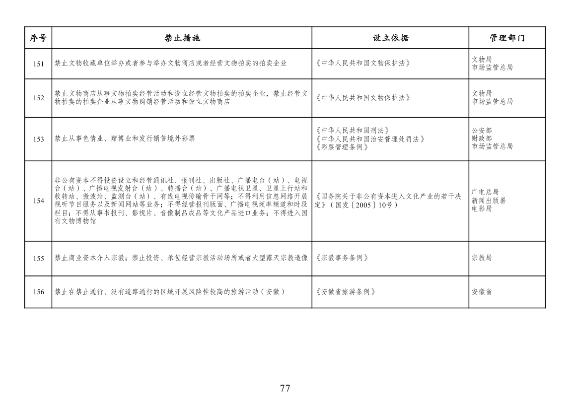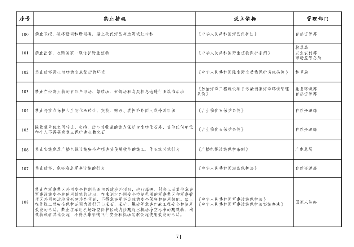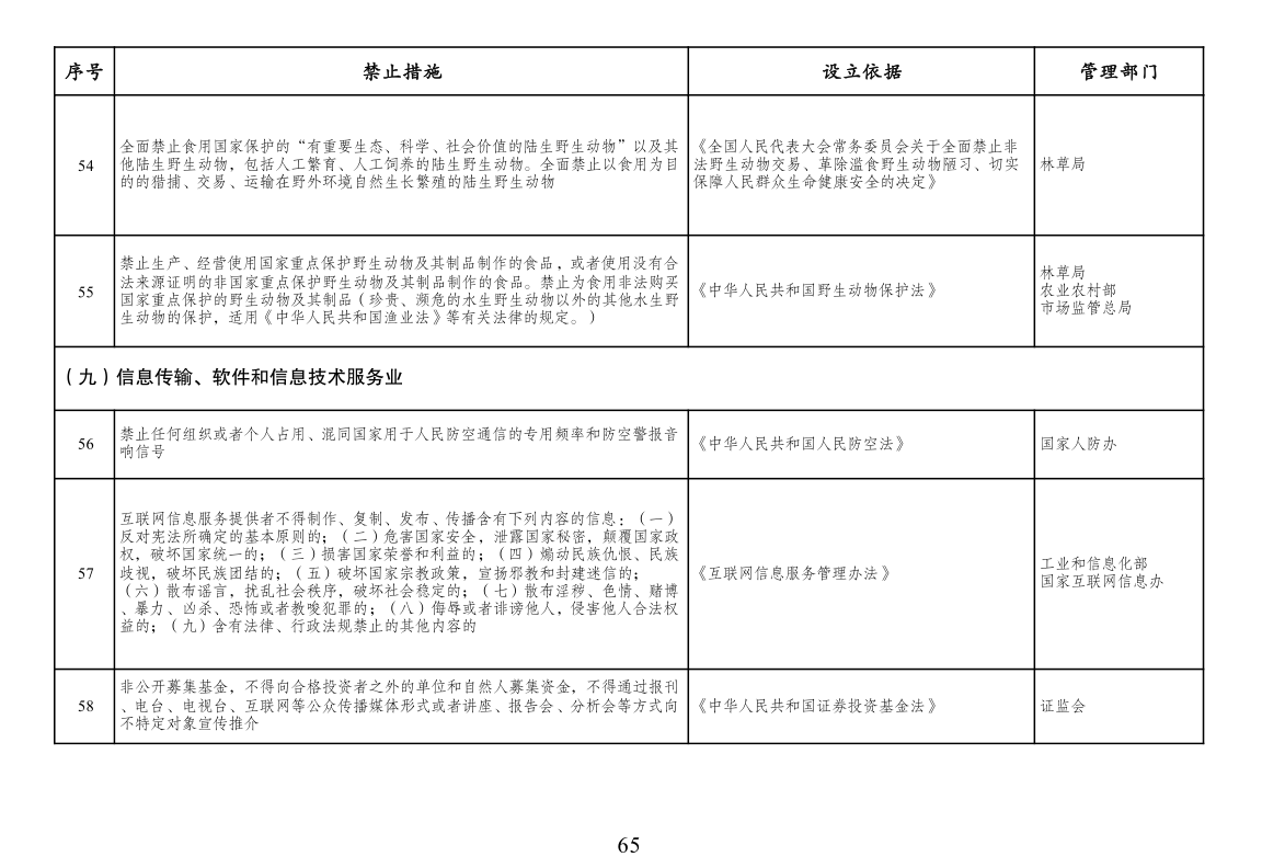 本附件所列禁止措施是现有法律、法规、国务院决定等明确设立、且与市场主体投资经营活动密切相关的禁止性规定,在此汇总列出,以便市场主体参考。法律、法规、国务院决定设立的其他禁止性措施,从其规定。
