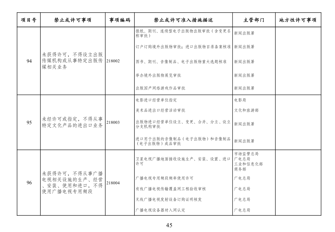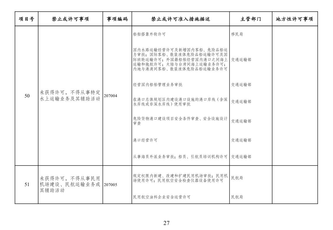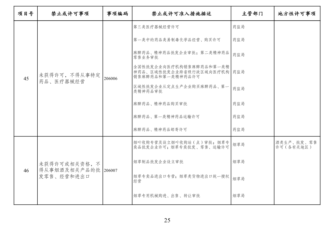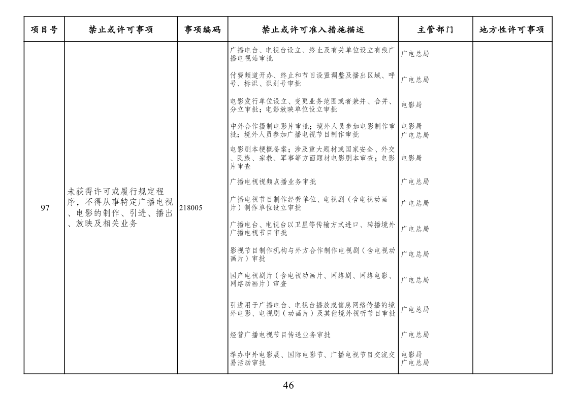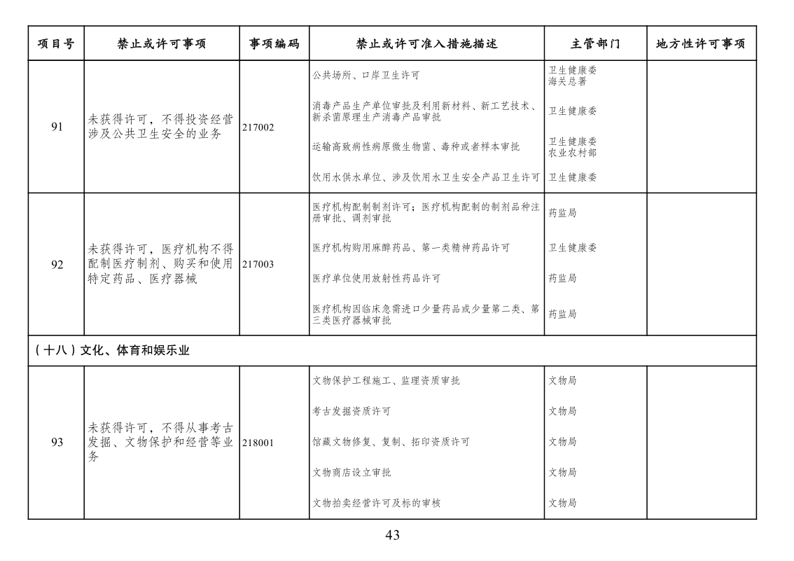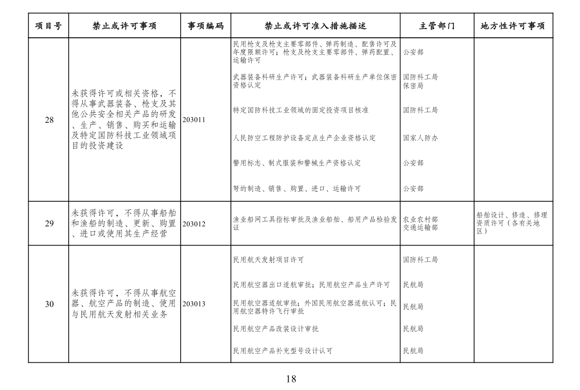 三、市场准入负面清单管理措施法定依据。列入清单的市场准入管理措施,由法律、行政法规、国务院决定或地方性法规设定,省级人民政府规章可设定临时性市场准入管理措施。市场准入负面清单未直接列出的地方对市场准入事项的具体实施性措施且法律依据充分的,按其规定执行。清单实施中,因特殊原因需采取临时性准入管理措施的,经国务院同意,可实时列入清单。为保护公共道德,维护公共利益,有关部门依法履行对文化领域和与文化相关新产业的市场准入政策调整和规制的责任。
