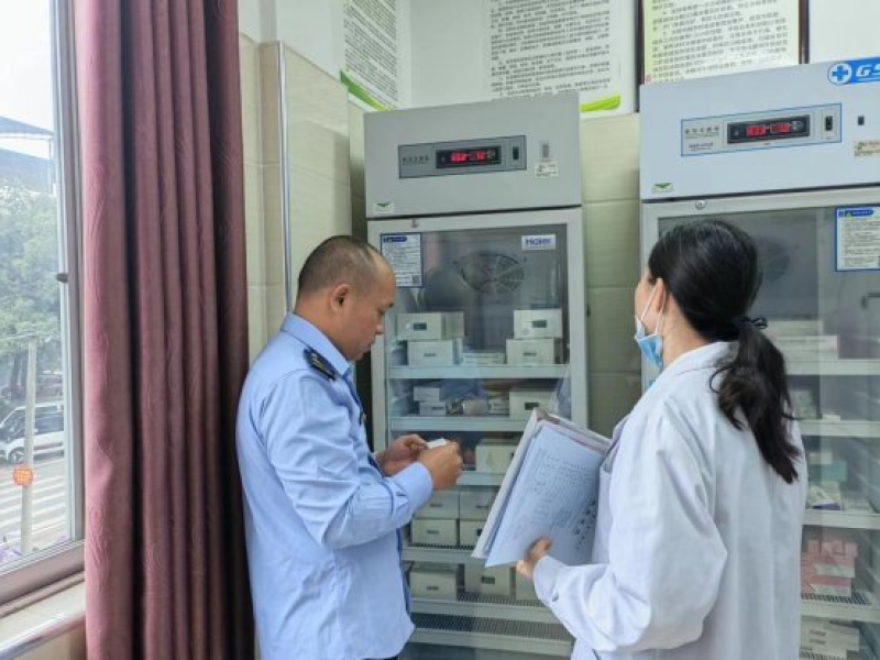 在检查过程中,执法人员重点检查疫苗效期、储存设备运行情况、温度监测记录、检验报告索取等内容,确保接种单位的验收记录真实有效,以及对设备的管理和维护是否符合要求。此次专项检查,共检查辖区内疫苗接种使用单位共 8家,出动执法人员32人次,检查覆盖率达100%。