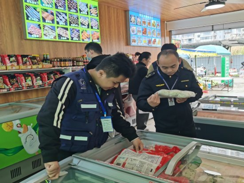 执法人员配合抽检人员抽检速冻食品