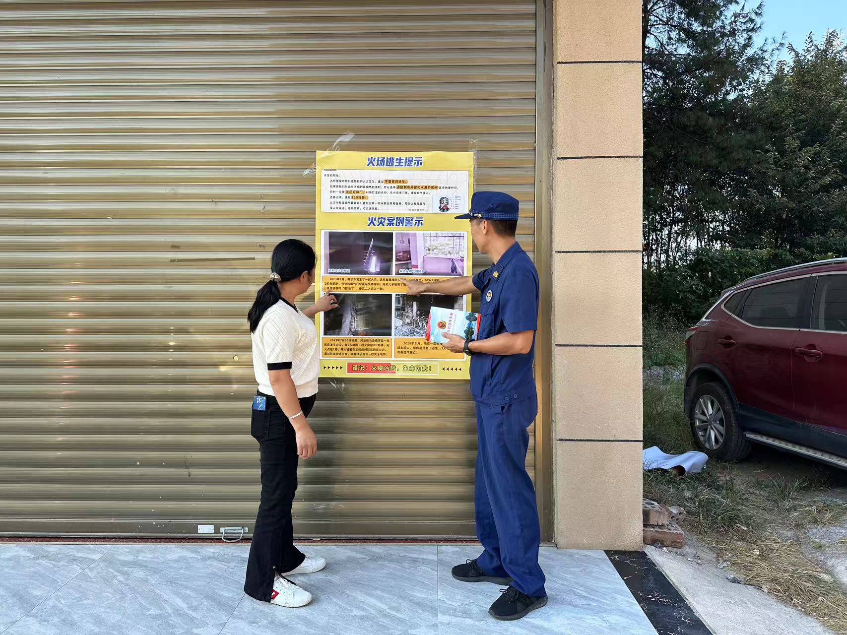 活动中,大队宣传人员以“贴近实际、贴近群众、贴近生活”为原则,用通俗易懂的语言向居民群众讲解家庭火灾隐患如何排查、家庭火灾应急处置方法等消防安全知识,并在村内醒目位置处悬挂、张贴消防公益标语海报。不少村民表示,这些消防公益宣传海报、标语通俗易懂,让自己潜移默化地学习了安全知识,不知不觉间提高了消防意识。