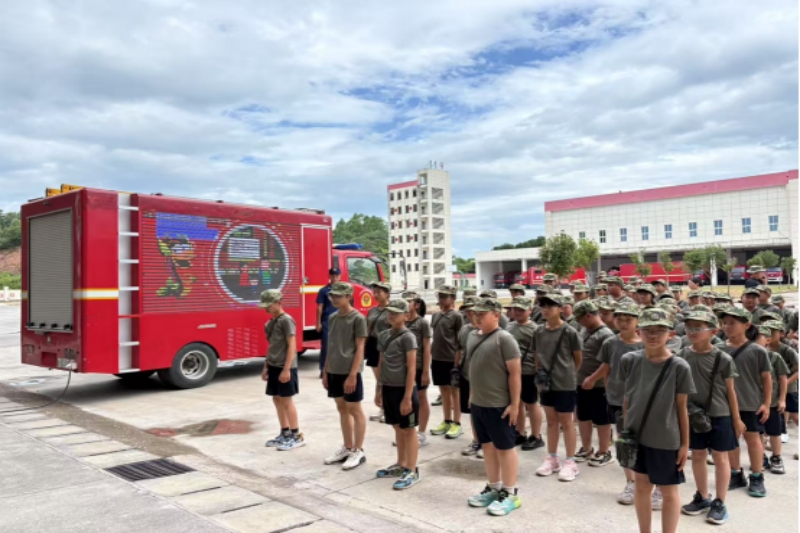 7月21日上午,桂林军博园飞鹰军事夏令营的50余名营员走进金雁消防站,开启了一场别开生面的“沉浸式”消防体验之旅。活动旨在通过零距离接触消防、学习安全知识,增强青少年的消防安全意识和自我保护能力。