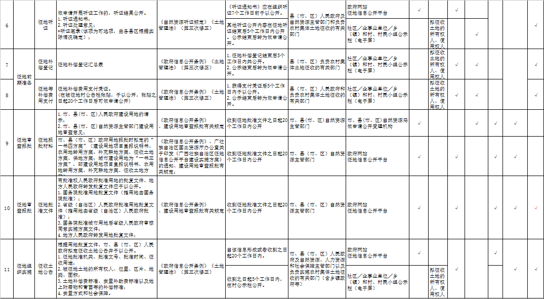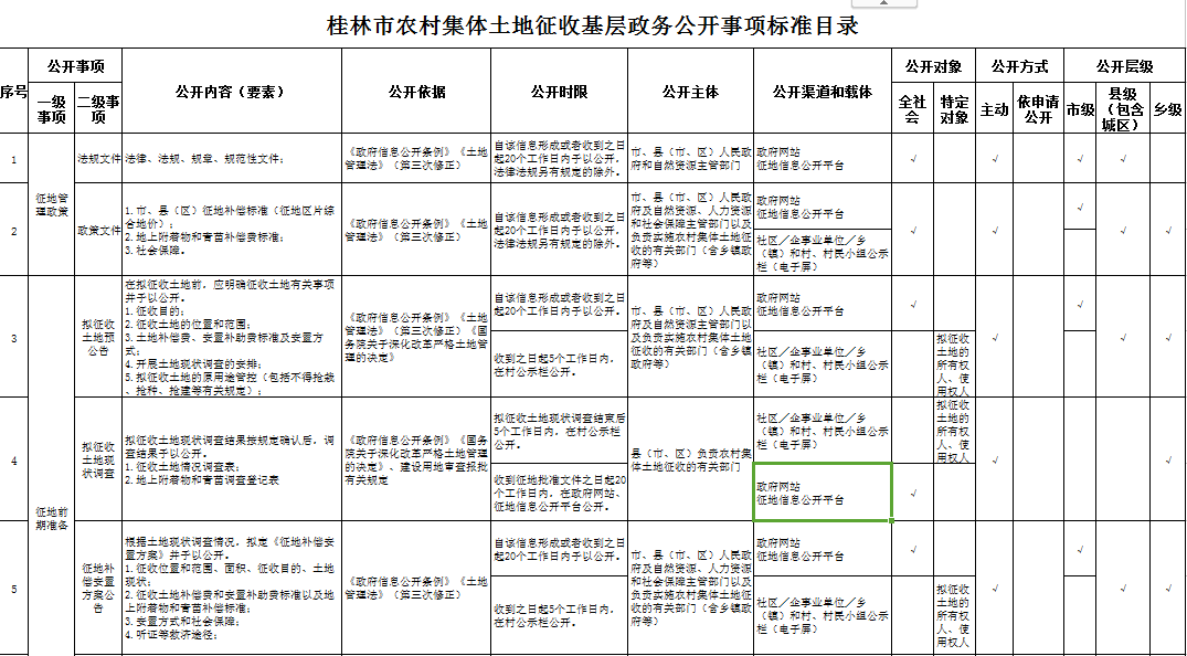 桂林市雁山区农村集体土地征收基层政务公开事项标准目录