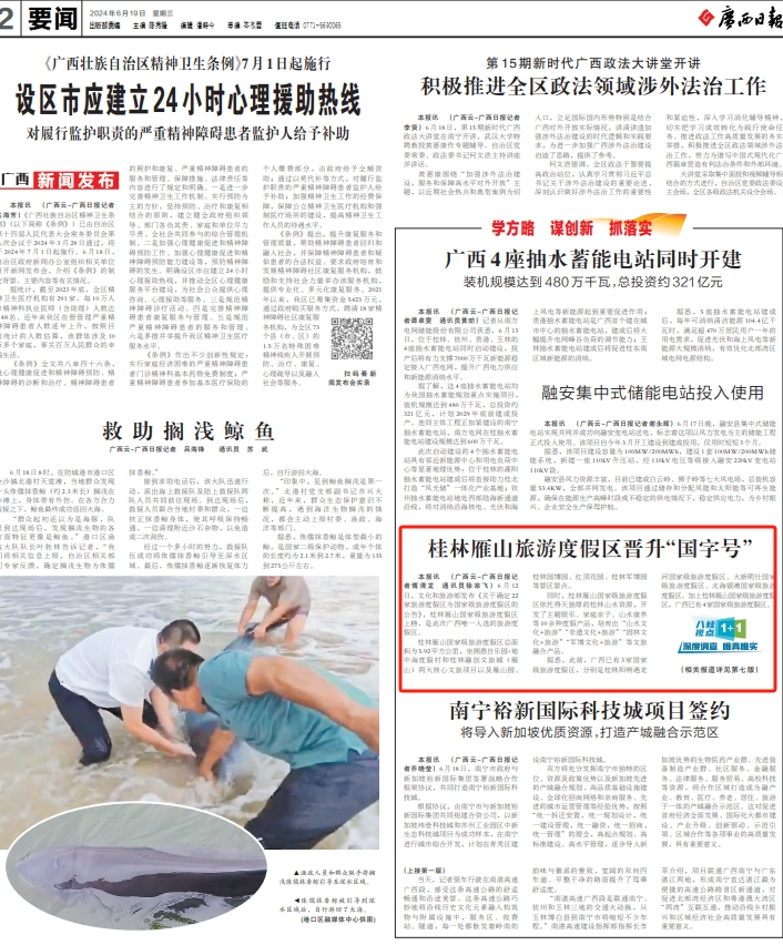 6月19日广西日报要闻二版刊发相关报道。