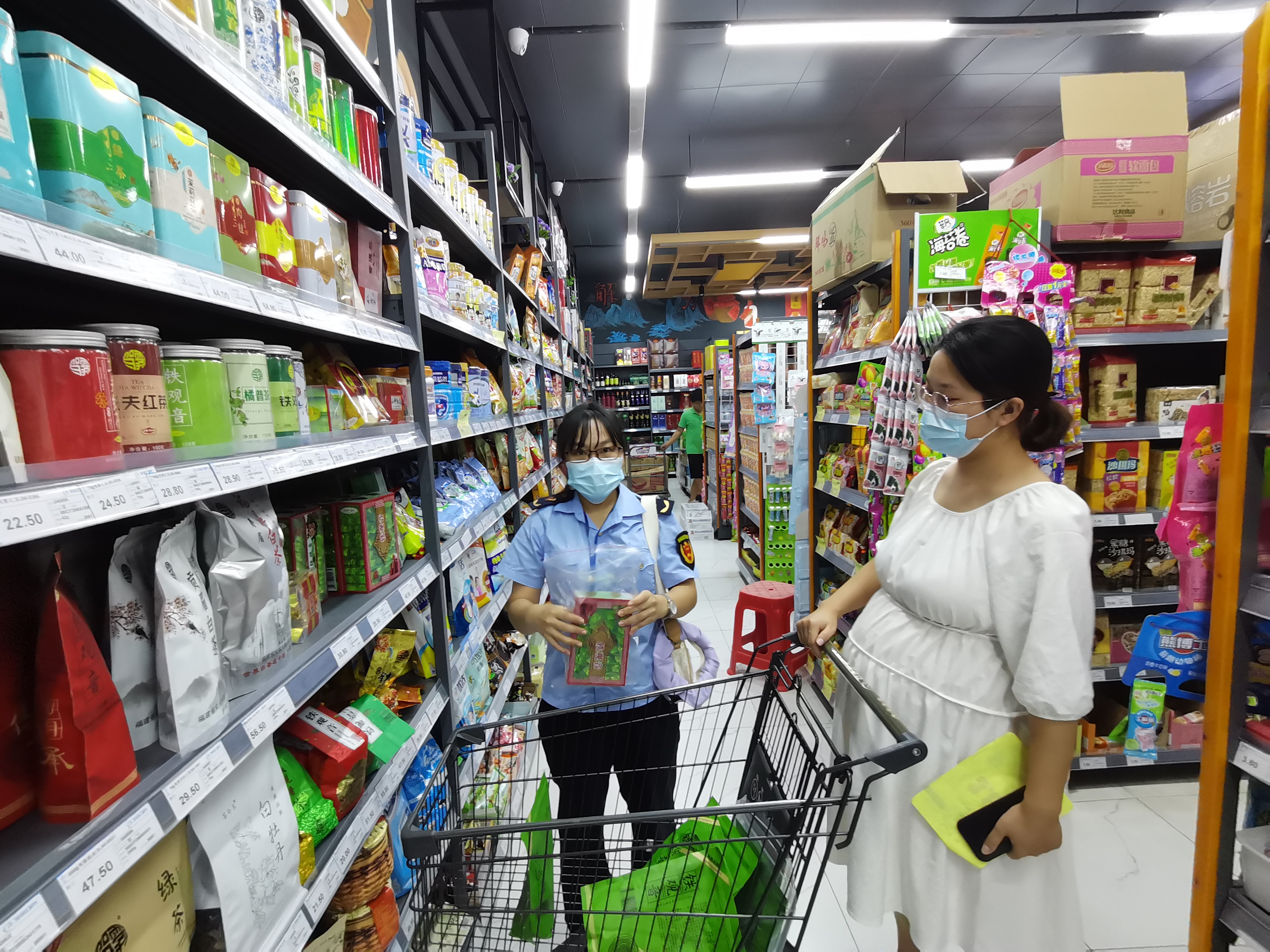 执法人员在超市进行茶叶抽样