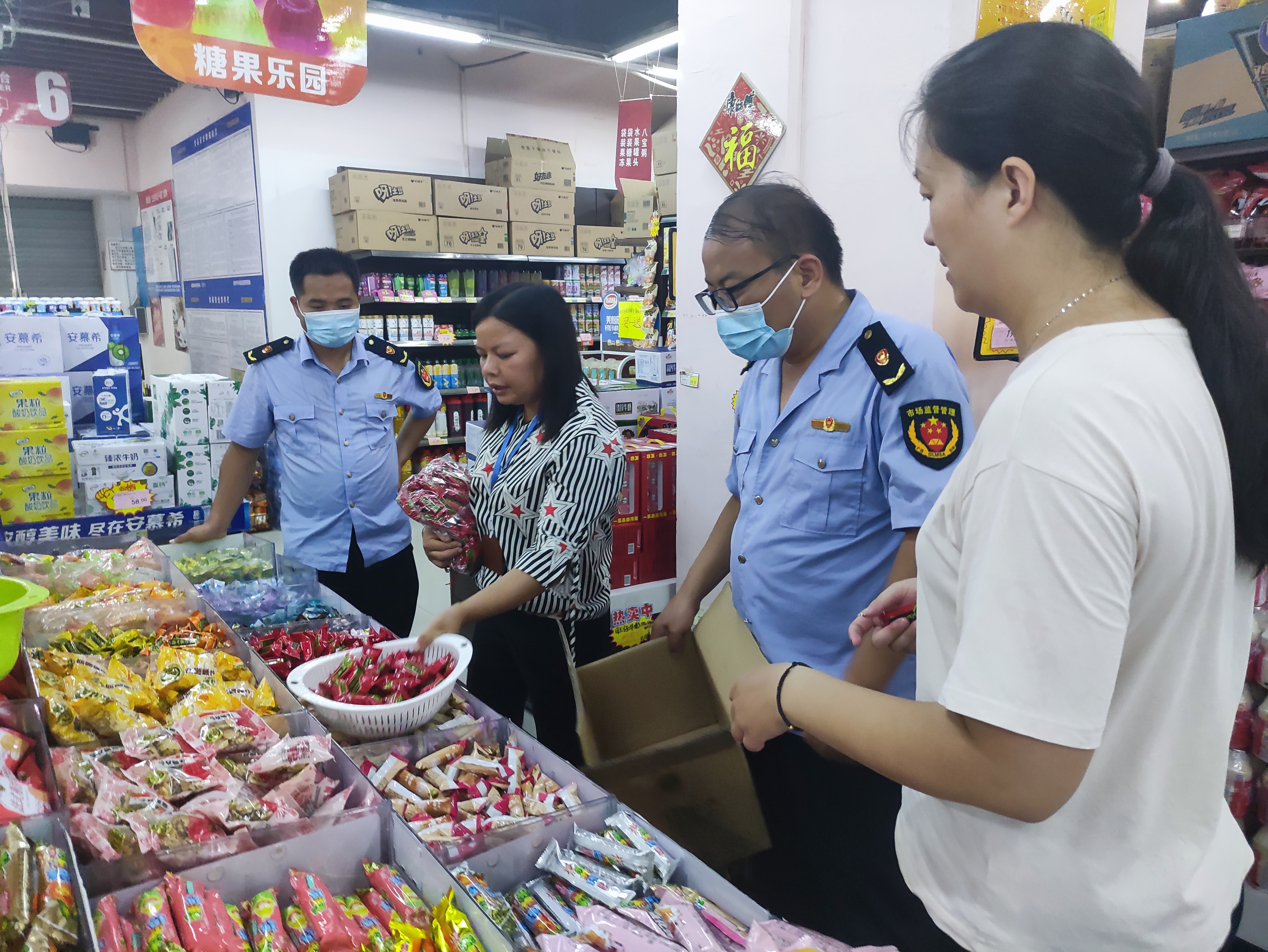执法人员进行糖果制品的现场抽取样品