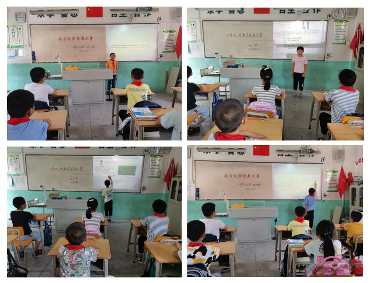 数学说题,提高了学生数学语言表达能力,促进了数学思维的发展。虽然之前有视频说题的经历,但那时是自己一个人说,现在要上讲台面对面说给老师和全班同学听,难免有些紧张,局促。通过老师的针对性点评指导,学生从刚开始的紧张局促、说话结巴到面对同学们阳光自信、思维清晰、语言流畅。经过一段时间的说题训练,同学们已经爱上这个活动,说题自信大方,他们像小老师一样,会根据题目信息圈一圈关键字词提醒要注意的地方,会画草图来协助分析讲解题目,有些同学在解答完后还会进行验算,并提醒同学们在解答这个题时要注意什么。经过说题活动的训练,学生的数学思维能力、语言表达能力都得到了很大提高。