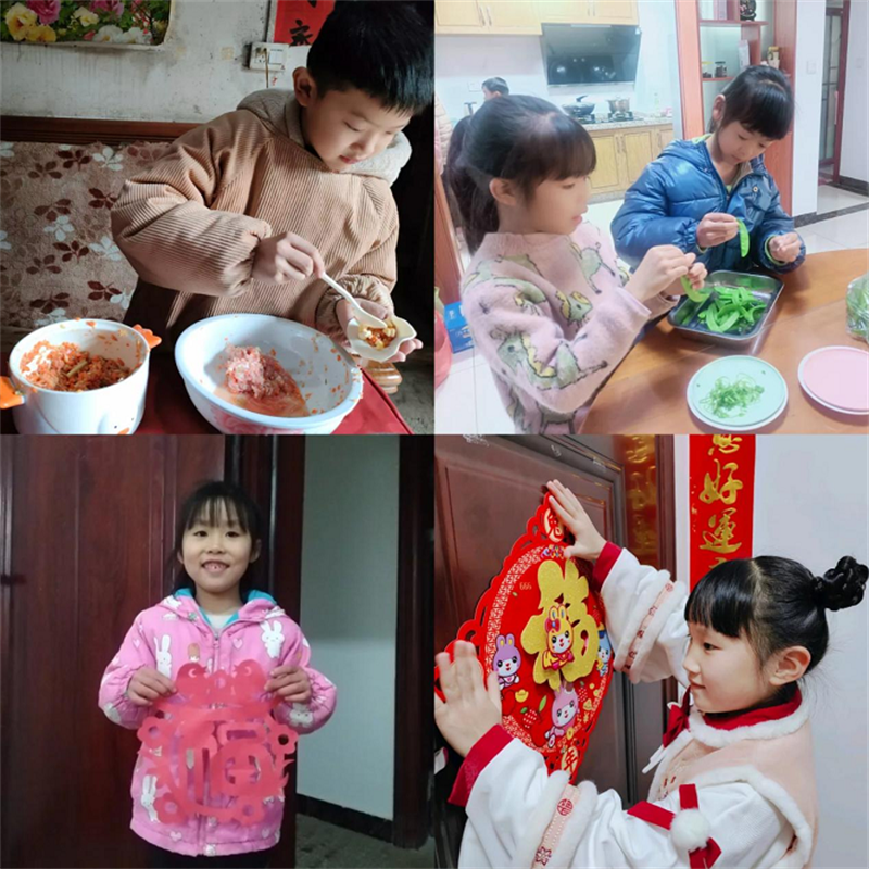 春节是辞旧迎新的日子,也是中华民族最重要的传统节日,包饺子、择菜、剪窗花、贴福字....孩子们在春节期间忙得不亦乐乎。他们以热情的态度,饱满的情绪,积极参与劳动,争做家庭小帮手!这些劳动不仅丰富学生们的寒假生活,更让孩子们在动手实践中进一步了解中国传统文化的底蕴。