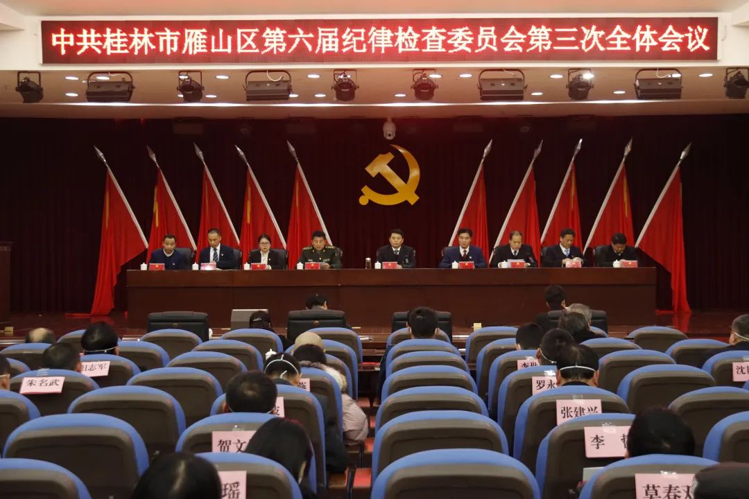 2月3日下午,中国共产党桂林市雁山区第六届纪律检查委员会第三次全体会议在区创业服务中心九楼会议室召开。全会深入贯彻落实党的二十大精神和习近平总书记重要讲话精神,按照中央纪委全会、自治区纪委全会和桂林市纪委全会部署要求,总结我区去年党风廉政建设和反腐败工作,部署今年任务,推进全面从严治党取得更大成效。区委书记李强出席会议并讲话,区人大常委会主任蒋桂斌、区政协主席李红出席会议。