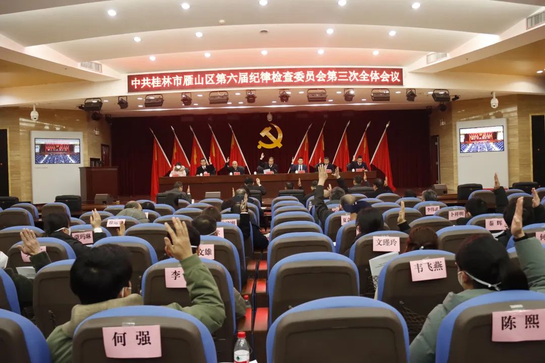 全会召开期间,与会人员还参加了区委组织的全区加强“一把手”监督暨警示教育大会,大会通报了2022年以来自治区、桂林市和雁山区查处的严重违纪违法典型案例,并组织观看有关警示教育专题片。